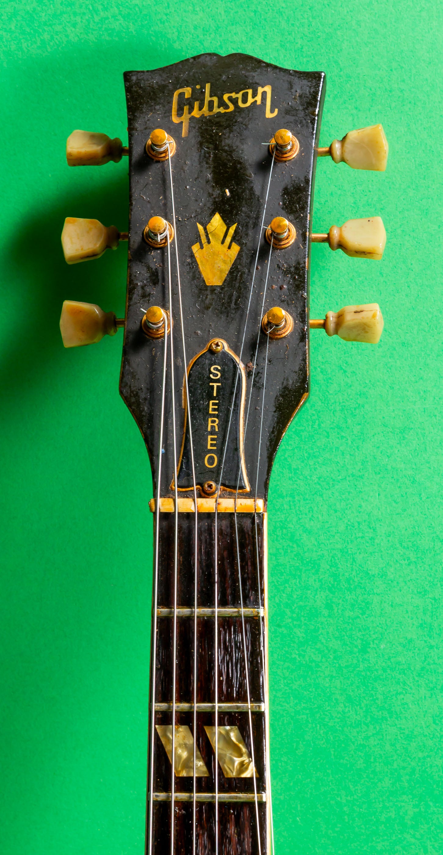 This guitar arrived at our shop with a bonus extra layer of finish applied by the previous owner. Initially, this issue seemed like it could be solved. After hours of solving this we have not solved it. There is a thick and perhaps brushed on clear finish over the original finish. If you are handy, or just love a good challenge, step into our office. This guitar seems pretty complete. There are no cracks or breaks.