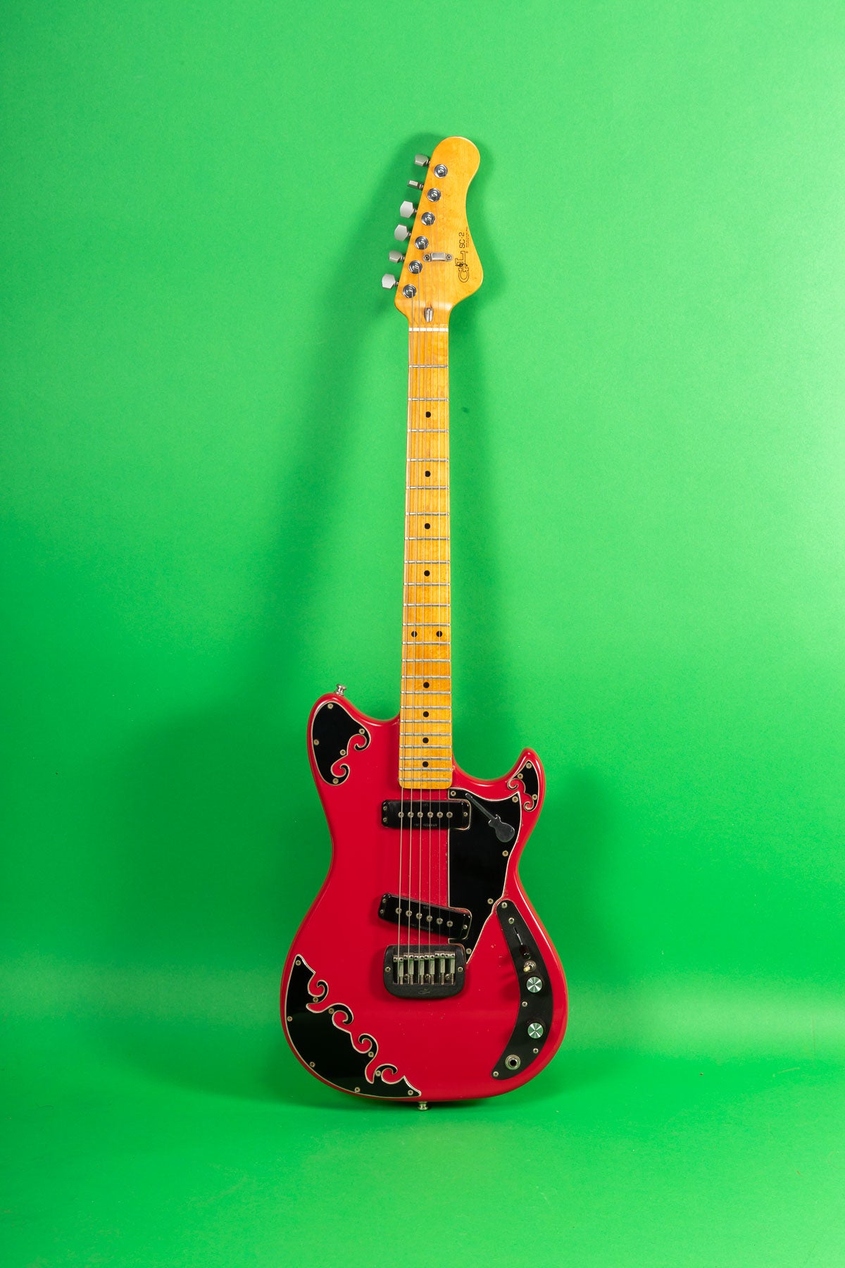 These early SC 2 guitars are some of the best guitars Leo Fender ever designed. This model and its companions were offered with this look and specifications only in 1982 and 1983 and are very low production. The body shape is much like a Fender Mustang, but the body is maple. The scale length is 25 1/2 inches. The neck and body are both maple on this original issue SC 2. The pickups are wild sounding with ceramic magnets that create a very wide tonal spectrum. I sort of wore out my blue one of these, playing it for eight straight years, three nights a week. This guitar has some modifications and decorations but still does what is needed.