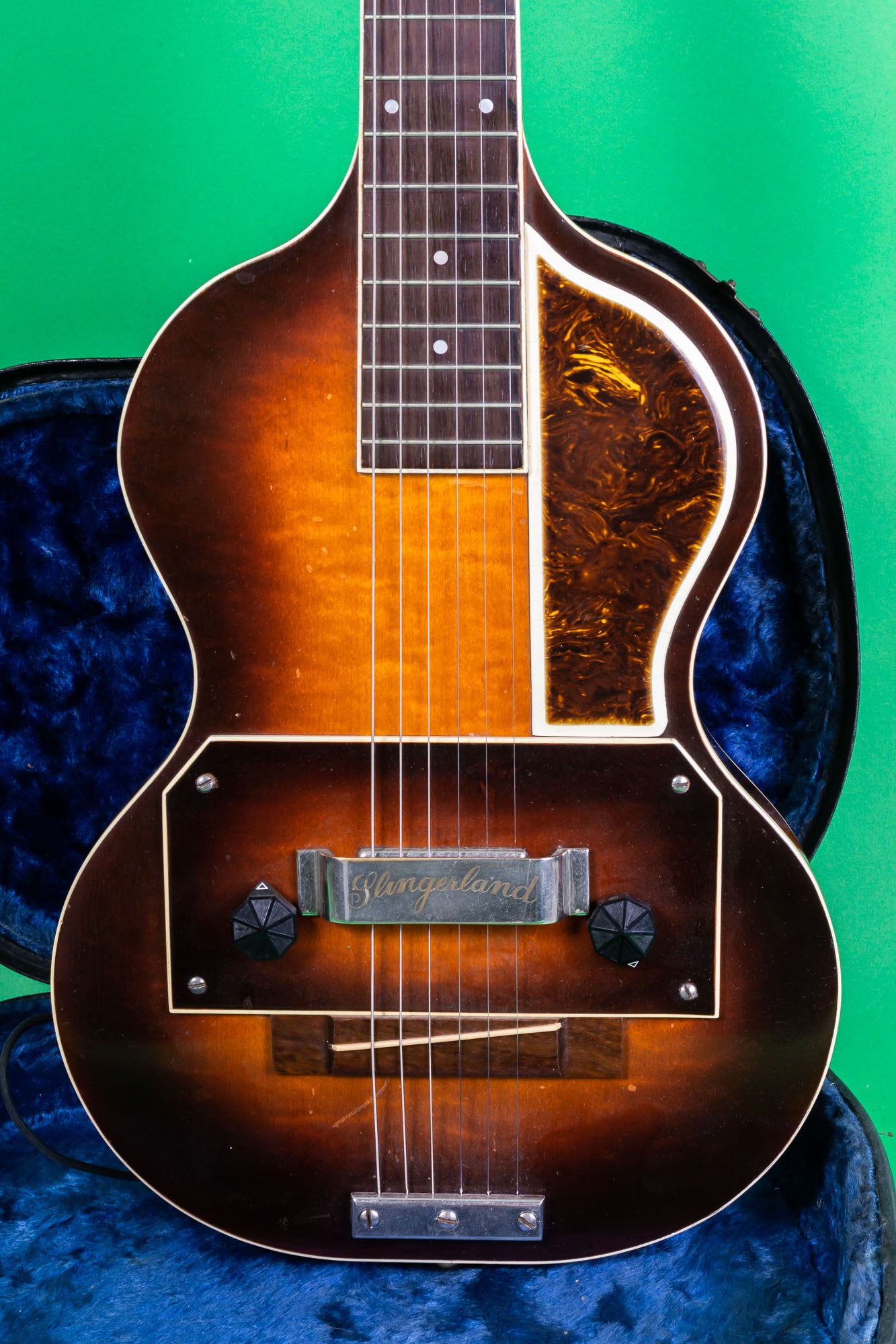 Very important historic instrument, this example is the one pictured on the cover of the "Pinecaster" book by Nacho Banos. The "Pinecaster" book is an in depth four volume chronicle of early electric guitars and is a must have. Slingerland produced this guitar circa 1936. This model 401 is in excellent all original condition and includes the original hard case.