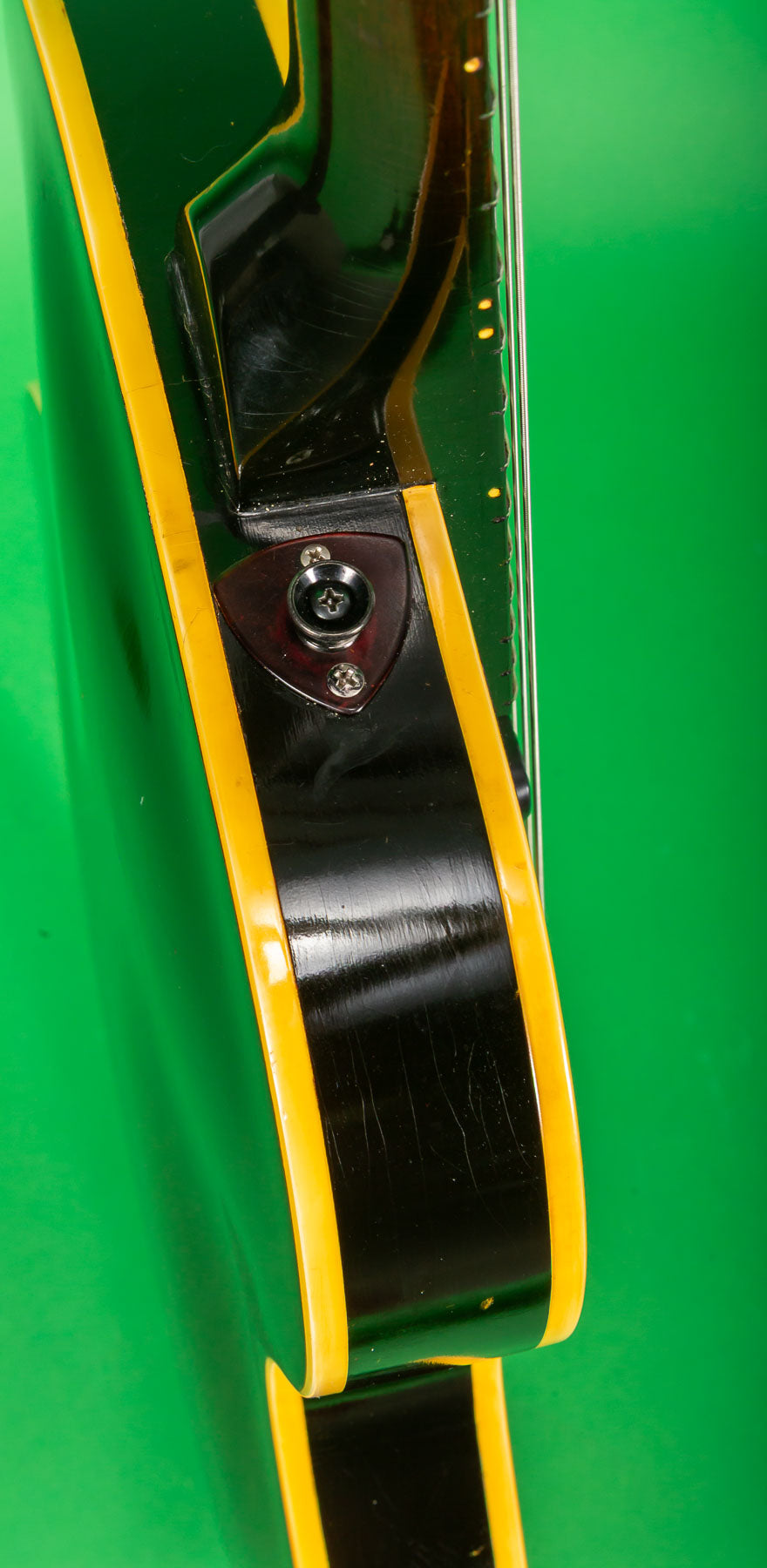 Circa 1963 wide neck version of this entry level archtop from Gibson. This is a nice clean and easy playing guitar. The is a strap button modification, see photo. There is very little wear or damage.