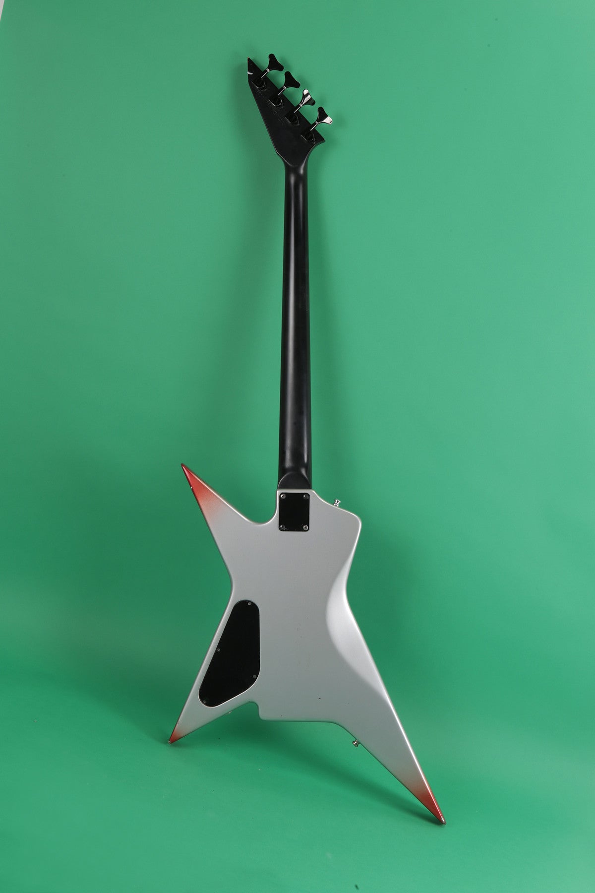 Very rare instrument with exceptional style. The finish is blue and silver with red highlights. The back pickup has been replaced with an EMG.